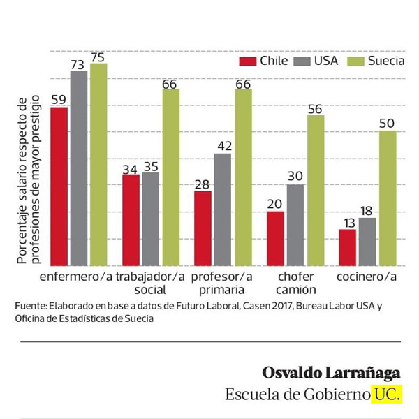 El director de la Escuela de Gobierno UC, Osvaldo Larrañaga, visualiza en este gráfico de PULSO sobre las diferencias salariales entre países desarrollados y vías de desarrollo.