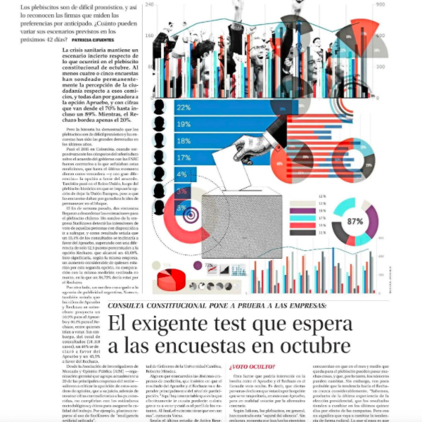 ¿Cuánto puede variar el escenario del plebiscito? ¿Es difícil pronóstico? “El problema es que se mezclan cuestiones políticas con miedo a enfermarse. Eso hace muy poco fiable cualquier encuesta que salga hoy” dice profesor Roberto Méndez en Diario El Mercurio.