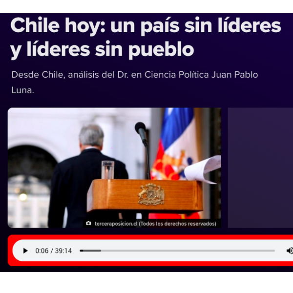 Profesor Juan Pablo Luna explica al medio uruguayo El Espectador la situación de Chile en relación a la legitimidad del sistema político, en el contexto de crisis sanitaria.