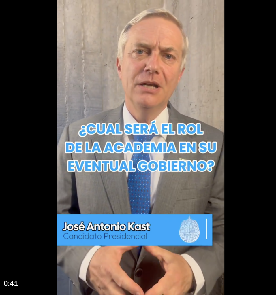José Antonio Kast: “Lo que puede hacer la academia respecto a las políticas públicas es muy importante, porque ustedes tiene el momento de pensar, pero es pensar tiene que llegar al actuar. Todo lo que ustedes piensan tiene que tener como finalidad mejorar la calidad de vida de las personas”.