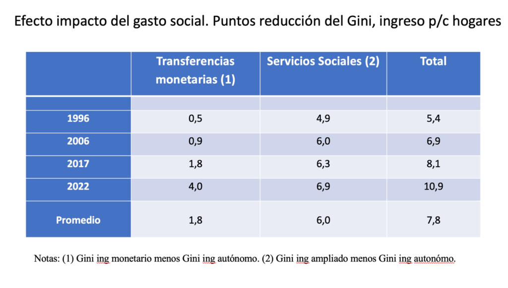 Un reciente estudio del profesor de la Escuela de Gobierno UC, Osvaldo Larrañaga, analiza los efectos redistributivos del gasto social en Chile en cuatro períodos clave (1996, 2006, 2017 y 2022). Muestra que estas inversiones han reducido la desigualdad en ingresos y acceso a servicios esenciales. En 1996, el coeficiente de Gini del ingreso autónomo se reducía en 5,4 puntos gracias a transferencias y servicios públicos. En 2022, la reducción alcanzó los 10,9 puntos.