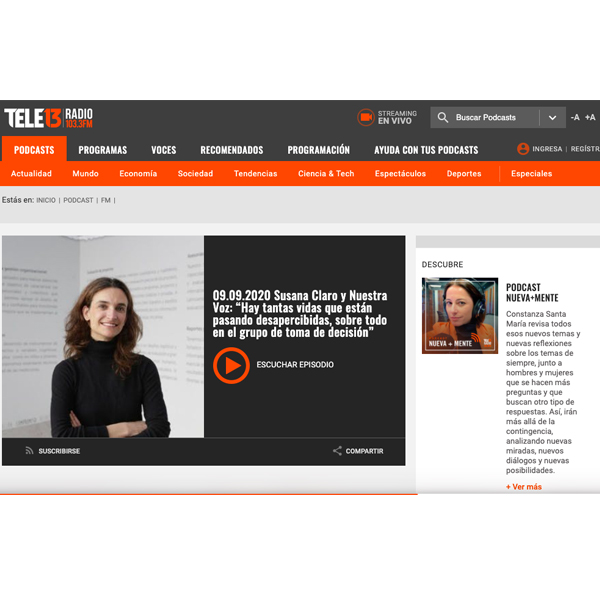 [Audio] Susana Claro y Nuestra Voz: “Hay tantas vidas que están pasando desapercibidas, sobre todo en el grupo de toma de decisión”