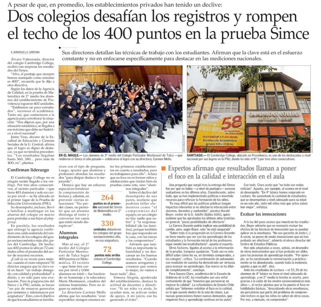 Dos colegios desafían los registros y rompen el techo de los 400 puntos en la prueba Simce
