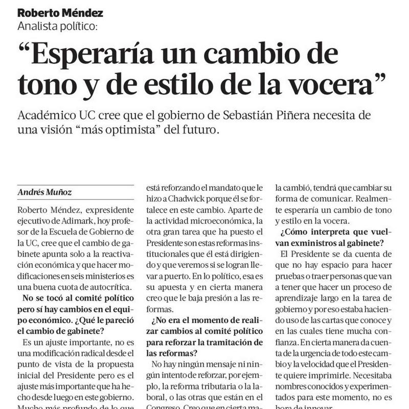 ¿Cuáles son los desafíos pendientes tras el cambio de gabinete? Nuestro profesor Roberto Méndez reflexiona sobre las áreas que debiese fortalecer el Gobierno y que es donde apuntan las principales críticas de la gestión.