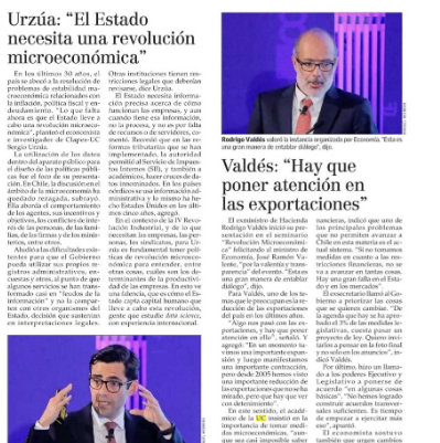 Rodrigo Valdés hace mención de su preocupación con respecto a las exportaciones del país y las medidas restrictivas que existen, en el seminario “Revolución Microeconómica” organizada por el ministerio de Economía. Nota realizada por el diario El Mercurio.