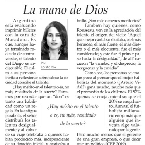 ¿Qué talentosos debiesen ser reconocidos por la opinión pública? ¿Los que generan mayor o menor valor social? ¿Cómo se define ese valor o “mérito”? La profesora Loreto Cox se refiere a su columna en El Mercurio al fenómeno generado luego de la partida de Maradona.