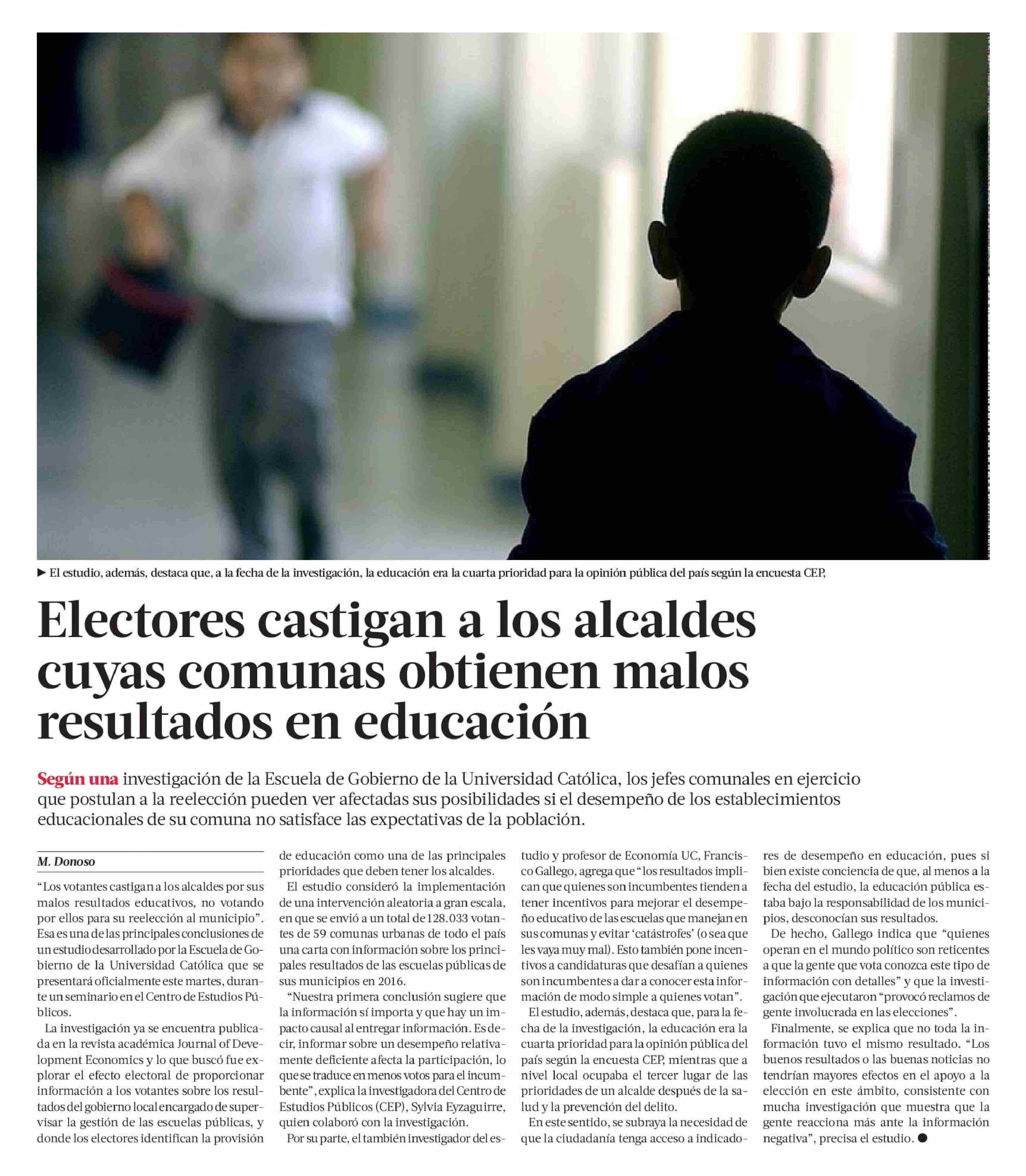 El medio reportea sobre la reciente investigación de la profesora Loreto Cox, junto a Francisco Gallego (UC), Sylvia Eyzaguirre (CEP) y Maximiliano García.