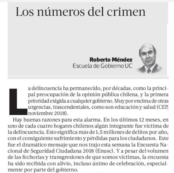 En su columna de diario La Tercera, nuestro profesor Roberto Méndez reflexiona en torno a los índices de seguridad ciudadana y las buenas noticias.