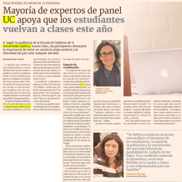 Diario Financiero explica los resultados de la consulta al Panel de Políticas Públicas, relacionada con el retorno a clases presenciales. Habla profesora Susana Claro.