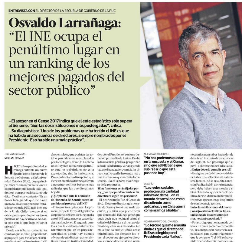Nuestro director Osvaldo Larrañaga es entrevistado por diario PULSO por el proceso que está siguiendo el INE en mejoras y nuevas metodologías.