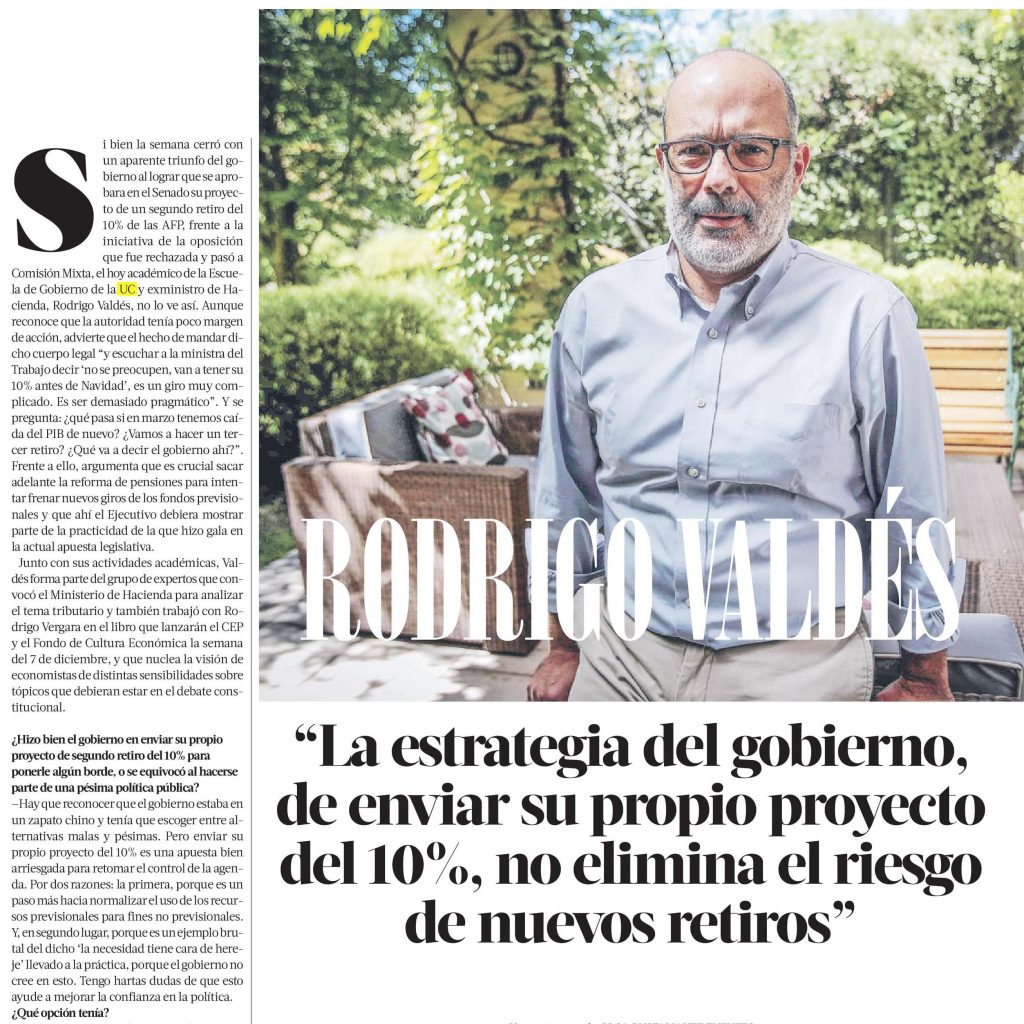 Rodrigo Valdés “La estrategia del gobierno, de enviar su propio proyecto del 10%, no elimina el riesgo de nuevos retiros”